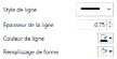Définir l'épaisseur de ligne. Il est possible de spécifier une épaisseur de ligne comprise entre 0,25 point et 12,00 points. L'épaisseur de ligne peut être définie par unité de 0,25 point en utilisant