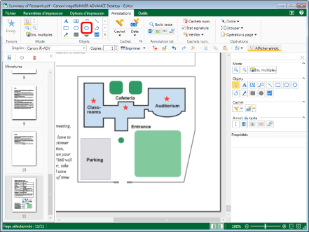 Cette opération peut également être effectuée avec les boutons d'outils de la barre d'outils. Si les boutons d'outils ne sont pas affichés sur la barre d'outils de Desktop Editor, consulter les rubriques suivantes pour les afficher.