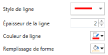 Définir l'épaisseur de ligne. Il est possible de spécifier une épaisseur de ligne comprise entre 0,25 point et 12,00 points. L'épaisseur de ligne peut être définie par unité de 0,25 point en utilisant