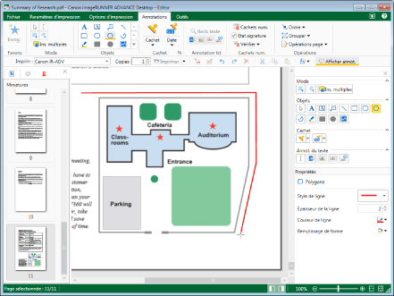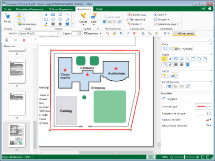 Si [Nuage (petit)] ou [Nuage (grand)] est sélectionné dans [Style de ligne], des lignes pleines s'affichent pour le cadre de l'annotation lors du déplacement d'un vertex.