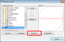 Les cachets de texte/d'image enregistrés automatiquement lors de l'installation ne peuvent pas être modifiés. En revanche, les cachets dupliqués à partir des précédents peuvent l'être.