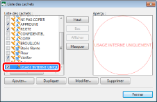 Les icônes de cachet s'affichent dans [Liste des cachets] et la boîte de dialogue [Liste des cachets] indique le type de cachet.