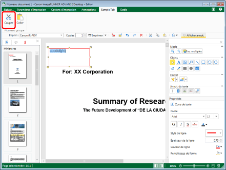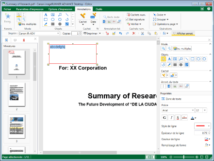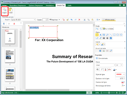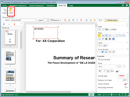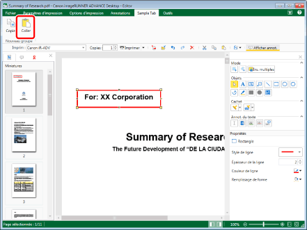 Si l'opération de collage est effectuée alors que l'annotation à copier/couper n'est pas sélectionnée, la chaîne de caractères copiée/coupée est collée en tant qu'annotation