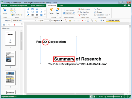 Si la zone où vous cliquez est une zone d'édition de texte, l'annotation est sélectionnée et vous permet de saisir du texte.