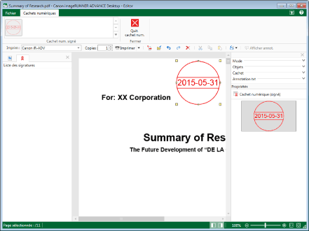 Si aucune information de date n'est insérée dans le cachet numérique, l'option [Modifier la date et l'heure] est désactivée.