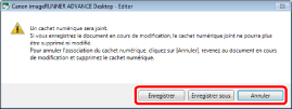 Si l'une des boîtes de dialogue ci-dessous s'affiche une fois le document enregistré, sélectionnez un processus de mise à jour approprié, puis cliquez sur [OK].