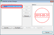 Vous ne pouvez pas modifier les cachets prédéfinis qui ont été enregistrés automatiquement lors de l'installation. En revanche, vous pouvez modifier les cachets obtenus par duplication de ces cachets.