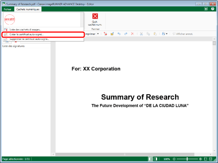 Les informations du certificat autosigné créé dans Desktop Editor peuvent être consultées à l'aide de la méthode indiquée ci-dessous.