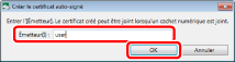 Le premier et le dernier espace saisis dans [Émetteur] sont supprimés lors de la création du certificat.