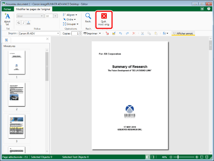 Un écran Mode Modifier les pages originales ne permet de modifier qu'un seul document.