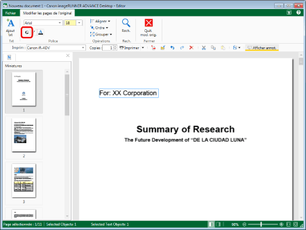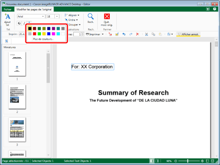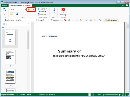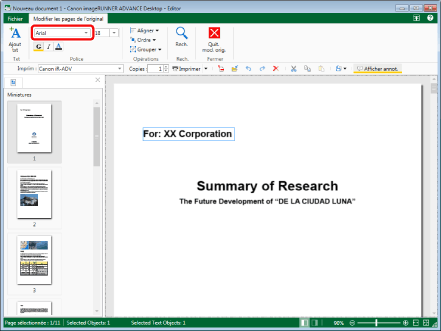 Les paramètres modifiés sont appliqués aux objets texte sélectionnés. Les paramètres initiaux sont conservés pour les éléments qui n'ont pas été modifiés.