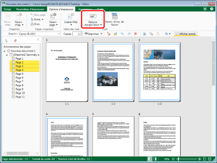(Réduire marges blocs) sur le ruban, puis sélectionner [Réduire les marges des blocs dans les pages consécutives].