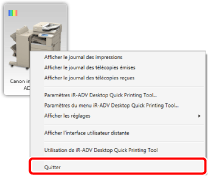 Si Printer Monitor est fermé ou que l'ordinateur est éteint alors que Quick Printing Tool est en cours d'exécution, Quick Printing Tool démarrera avec le même état lors du prochain démarrage de Printer Monitor.