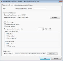 Permet de sélectionner l'image à utiliser en tant qu'icône de périphérique de Quick Printing Tool.