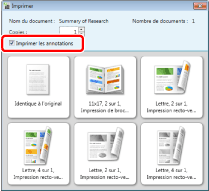 Les annotations ajoutées avec une autre application que Desktop Editor peuvent être imprimées que la case [Imprimer les annotations] soit cochée ou non, en fonction du type d'annotation.