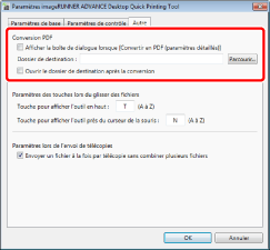 [Afficher la boîte de dialogue lorsque [Convertir en PDF (paramètres détaillés)]]
