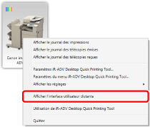 Cliquez avec le bouton droit de la souris sur Quick Printing Tool et sélectionnez [Afficher l'interface utilisateur distante].
