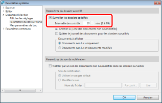 Définit l'intervalle de surveillance des dossiers, de 1 à 99 minutes. Pour plus d'informations, veuillez consulter :