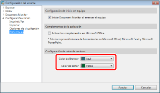 Seleccione el color para cambiar de la lista desplegable [Color de Browser] o [Color de Editor].
