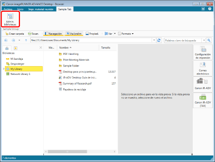 Si se registran un gran número de documentos en una Biblioteca de red (base de datos), las operaciones de Desktop pueden volverse inestables porque aumenta el número de miniaturas en la base de datos. En este caso, anule la selección de la casilla de verificación [Guardar temporariamente las miniaturas en la base de datos] para desactivar el guardado temporal de las miniaturas.