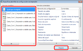 Seleccione la casilla de verificación si quiere utilizar los ajustes de la impresora como plantilla al realizar la impresión.