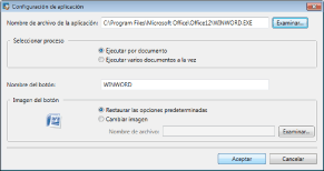 para un botón de salida de aplicación mostrado en la cinta o la barra de herramientas y seleccionando [Cambiar]. Si un botón de salida no se muestra en la cinta o la barra de herramientas, consulte lo siguiente para visualizarlo. |