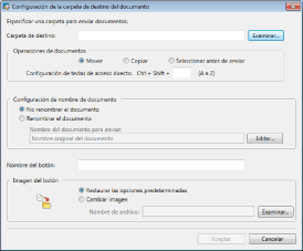 Los ajustes de la Carpeta de destino del documento pueden configurarse para cada botón.