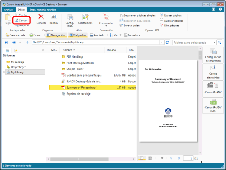 Seleccione los documentos o carpetas para mover en la Ventana de navegación o la Ventana de visualización de la lista de archivos.