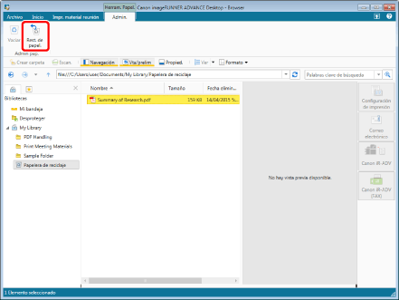 La papelera de reciclaje no puede usarse para una Biblioteca de Document Server o una Biblioteca de SharePoint Server si usted no tiene permisos de edición o superiores.