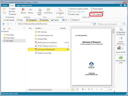 Si el documento original es un PDF con Reader Extensions, esta función se eliminará del documento PDF original después de la supresión.