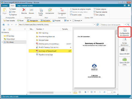 Si selecciona una carpeta o varios documentos, aparece el cuadro de diálogo [Configuración del orden de varios documentos]. Para obtener más información, consulte: