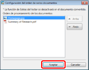 Los valores establecidos en el cuadro de diálogo [Configuración detallada para documento PDF] se conservan para la próxima vez.
