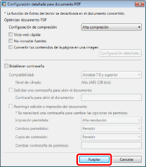 Seleccione los ajustes de compatibilidad de seguridad del documento PDF.