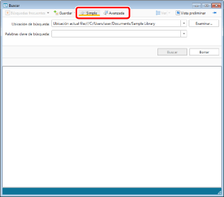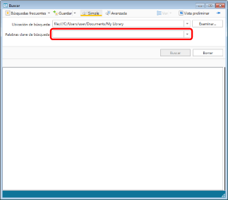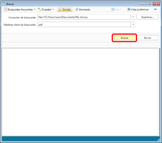 La ruta de acceso a la biblioteca o a la carpeta de objetivo de búsqueda aparece en [Ubicación de búsqueda] en la Pantalla de búsqueda.