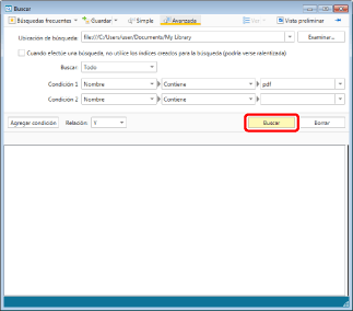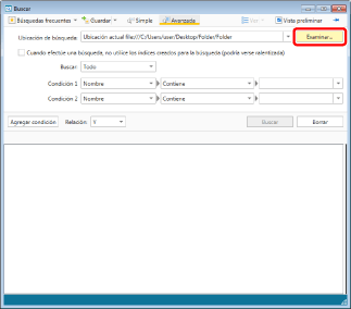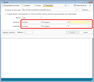 Si se selecciona [O], se mostrarán los resultados de búsqueda que incluyan cualquiera de las condiciones de búsqueda establecidas en [Condición].