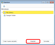 Si se establecen los iconos predeterminados de Bibliotecas de red, usando su color puede determinar el tipo de Biblioteca de red mostrada en la Ventana de navegación y el cuadro de diálogo [Examinar].