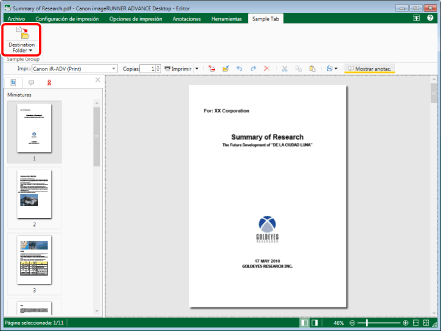 para una Carpeta de destino del documento mostrada en la cinta o la barra de herramientas y seleccione [Ejecución].