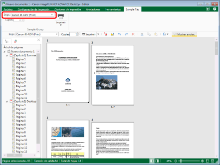 Si cambia el [Nombre de la impresora] de un controlador de fax a una impresora, [Enviar fax] cambia automáticamente a [Imprimir].