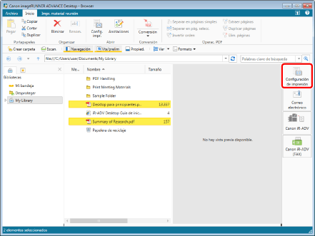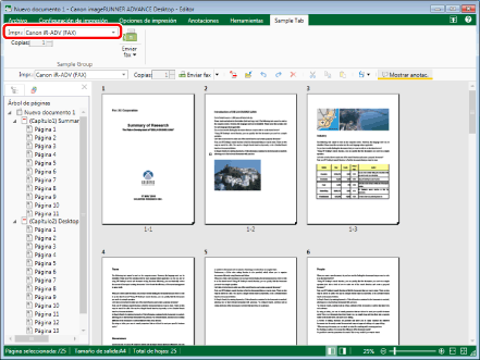 Si cambia [Nombre de la impresora] de un controlador de impresora a un controlador de fax, [Imprimir] cambia automáticamente a [Enviar fax].
