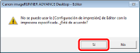 Cuando los documentos seleccionados contengan un documento IWB, aparecerá un mensaje de confirmación para informarle de que no se reflejará ningún ajuste de impresión existente para ese documento IWB. En este caso, haga clic en [Aceptar]. Si selecciona la casilla de verificación [No mostrar este mensaje de nuevo], este mensaje no aparecerá la próxima vez.