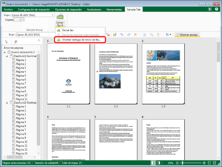(Enviar fax) en la cinta y seleccione [Mostrar diálogo de envío de fax].