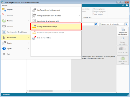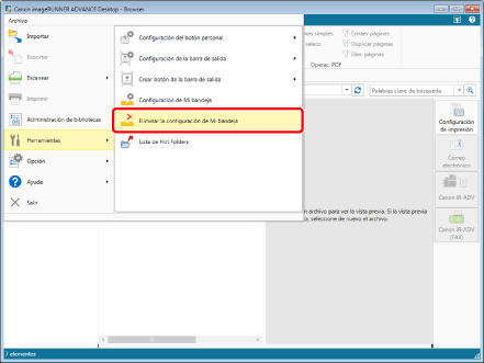 Carpetas ya registradas como un botón de salida de bandeja de destino