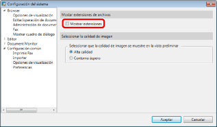 [Configuración del sistema] > [Configuración común] > [Opciones de visualización] > [Mostrar extensiones]