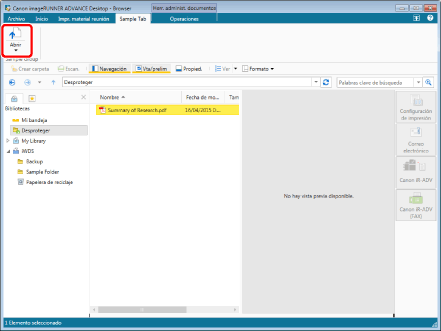 Seleccione un documento en la Ventana de visualización de la lista de archivos, y haga clic en para (Abrir) en la cinta.