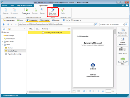 Cuando seleccione una Biblioteca de Document Server o una Biblioteca de SharePoint Server con la cual no se haya establecido conexión, la biblioteca debe estar conectada. Para obtener más información sobre cómo conectarse, consulte: