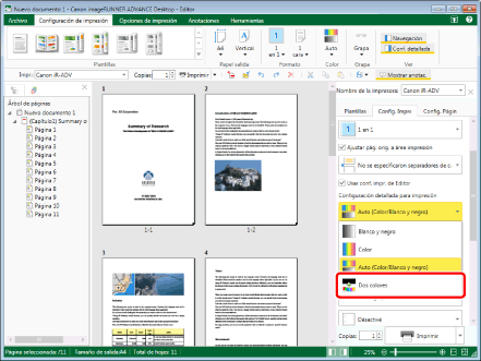 Solo es posible seleccionar el modo de dos colores si lo admite el controlador de impresora.