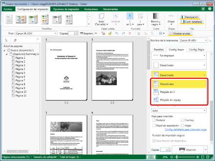 Las opciones de plegado varían en función de la impresora seleccionada en [Impr.].