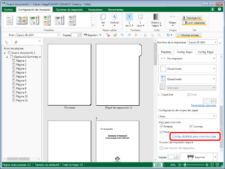 El origen del papel de la impresora seleccionada en [Impr.] determina si es posible o no definir papel de separador.