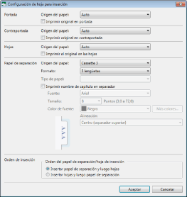 [Orden del papel de separación/hoja de inserción]