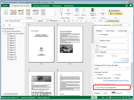 Si se selecciona una impresora que no puede especificar la impresión segura y el número de copias que se deben imprimir al mismo tiempo y se ha especificado el número de copias